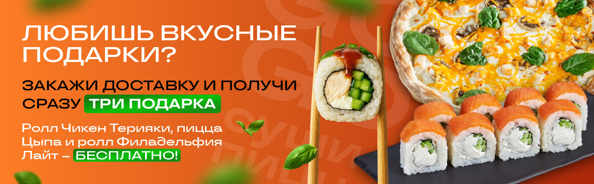 А если сумма заказа достигнет 2500 ₽ и выше, тебя ждет целый сет из трёх подарков — ролл Филадельфия к уже полученным бонусам!